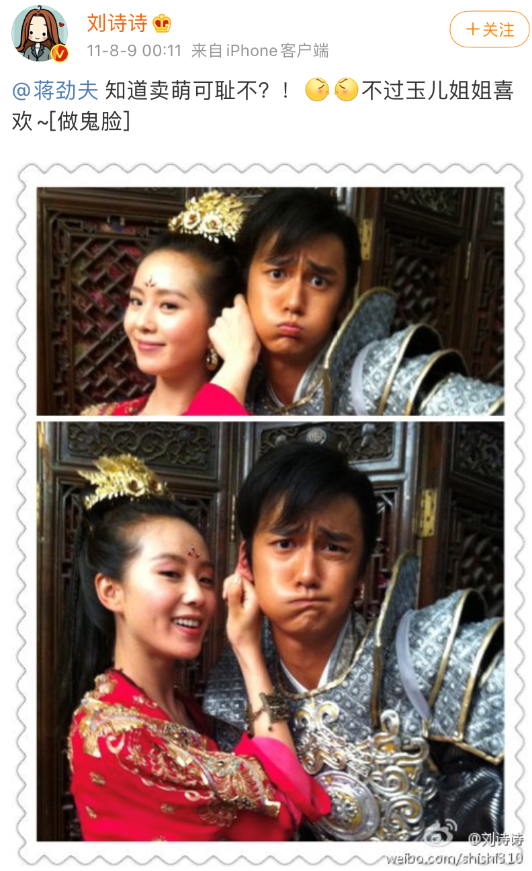 《轩辕剑》刘诗诗,发剧中CP的亲密合照↓ 同一部剧,胡歌表示收视破三就和宁珂(唐嫣)热吻↓ 这些放在现在,会不会被骂?一定会。 怀念早年艺人把微博玩成朋友圈吗?也怀念吧。 一边怀念,一边被偏见影响。 橘也一样,要反思自己为何被改变了, 才会在尹正发文表白黄晓明时,第一反应是油腻炒作↓