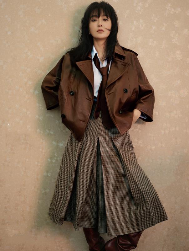 8月18日,演员秦岚最新杂志大片曝光。镜头下的秦岚,敛起一向温柔的笑颜,化身复古摩登女郎,复古chic的港风造型与秦岚富有张力的时尚表现力碰撞出独特的清冷魅力,经典黑白与暖黄色调的画面构图,让整组大片更加具有质感和故事性。咖色短款皮风衣搭配格纹高腰阔腿裙裤,浓郁的港风腔调,略显凌乱的秀发,增添一抹柔和氛围。 内页大片中,白色衬衫搭配咖色短裙,扎起干练的低马尾,金色耳环与项链点缀细节,是简约利落的雅致格调;黑色连衣裙上蕾丝薄纱的设计,彰显优雅亦性感的美丽姿态;黄色套装搭配皮质手套,诠释现代摩登风尚。 近日,由秦岚主演的电视剧《传家》曝光首个片花,剧中秦岚饰演典雅文静的易家长女易钟灵,此次是秦岚和聂远继《延禧攻略》之后再次合作,不禁让观众期待值大增。希望之后在不同领域看到更多面的秦岚。