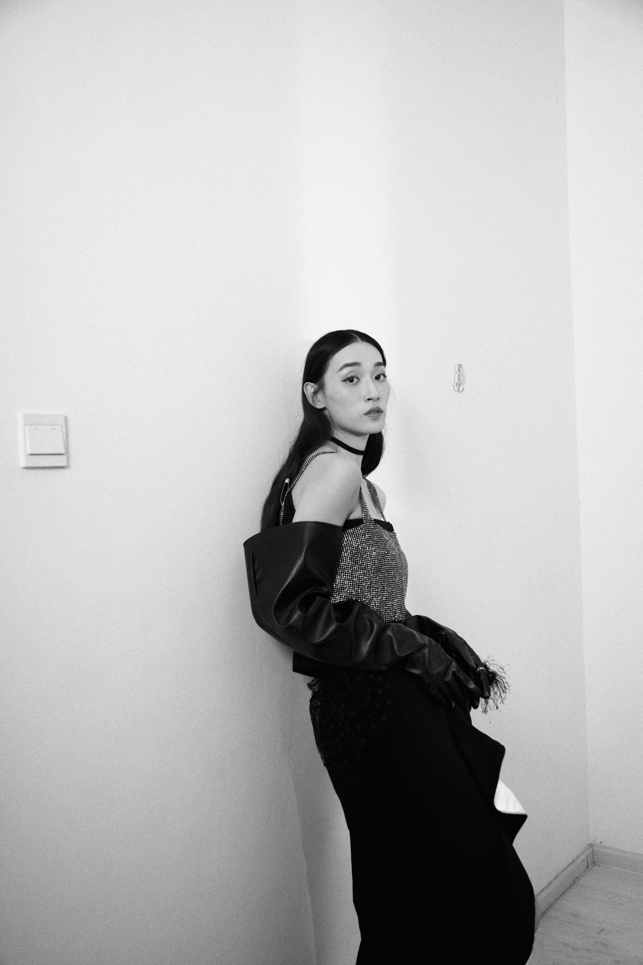 张馨比黑色系写真曝光 长款时尚手套搭配波点旋转纱裙又美又飒[6P]