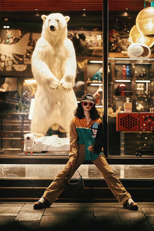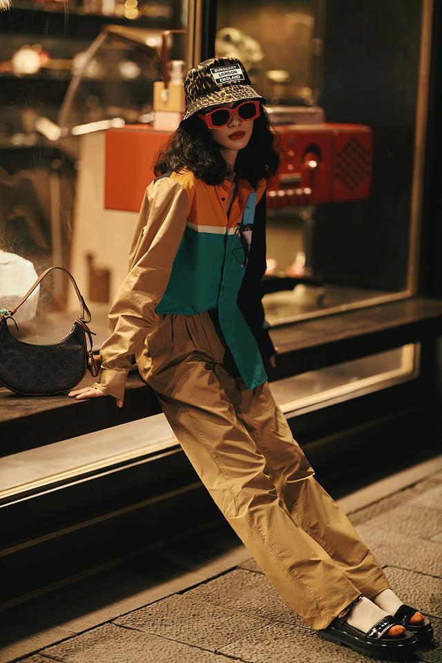 九月来临,演员孙佳雨在社交平台上分享了一组初秋夜景写真。照片中,孙佳雨蓬松卷发造型出街,慵懒复古,十分迷人。她身穿人脸印花橙绿拼色衬衫搭配卡其色休闲长裤,搞怪个性,潮酷时髦。长袜搭配凉鞋,轻松穿出自己的独特时尚感,袜子上的橙色与衬衫上的色块颜色相呼应,暗藏小心机。豹纹渔夫帽、腋下包和夸张的粉色墨镜,尽情展示自己的时尚态度。