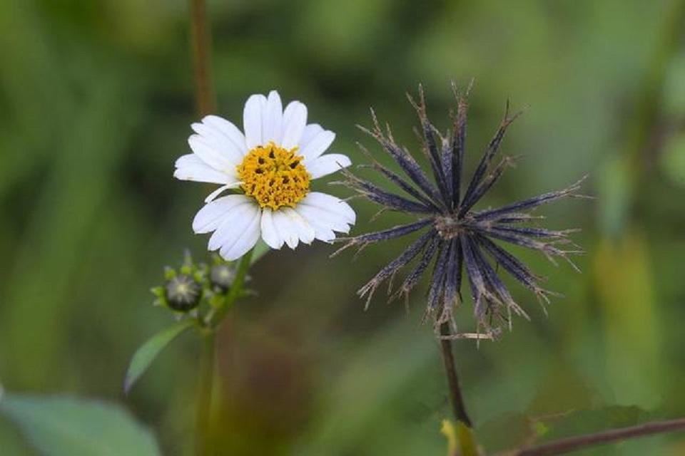 4、“鬼针草”会开花,有白的也有黄的,这些小花倒让它们显得没有那些可恶了。其实人们没有很详细地了解过它,“鬼针草”是民间一种疗效很好的草药。