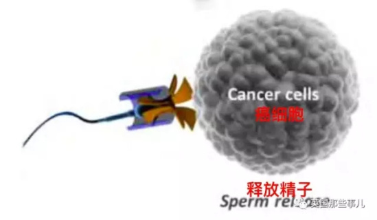 《用精子做代步工具,把药物运到女性癌症患者体内的指定位置。该研究还在进行中….》
