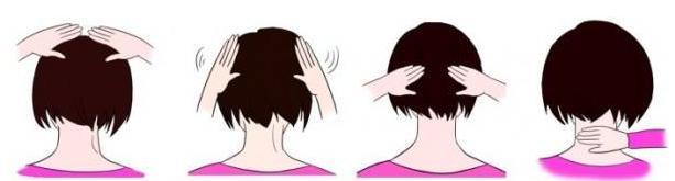 坐于椅子上或站立,双眼平视前方,全身放松。然后举起双臂,用双掌同时拍打颈部,左手拍打左侧颈部,右手拍打右侧颈部。先从后颈开始,逐渐向上拍打,一直拍打到前额部,再从前额部往后拍打,直到后颈部,这样反复拍打5~8 遍为一次。