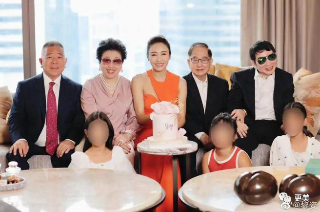 去年黎姿生日,他把C位留给妻子一家,坐在最左边。