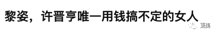 坊间曾传闻,当年许晋亨卖力追求过她,但因为当时许晋亨身边还有其他莺莺燕燕,黎姿果断拒绝了他。