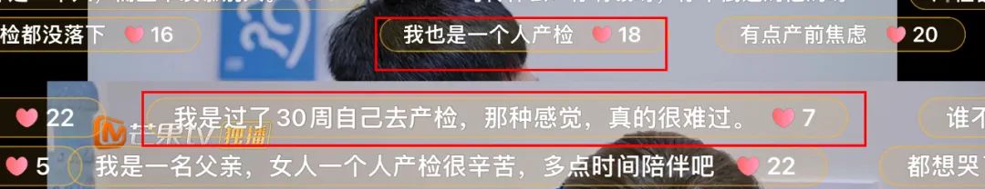 在王灿哭诉自己独自产检时,弹幕中有人分享自己的经历: