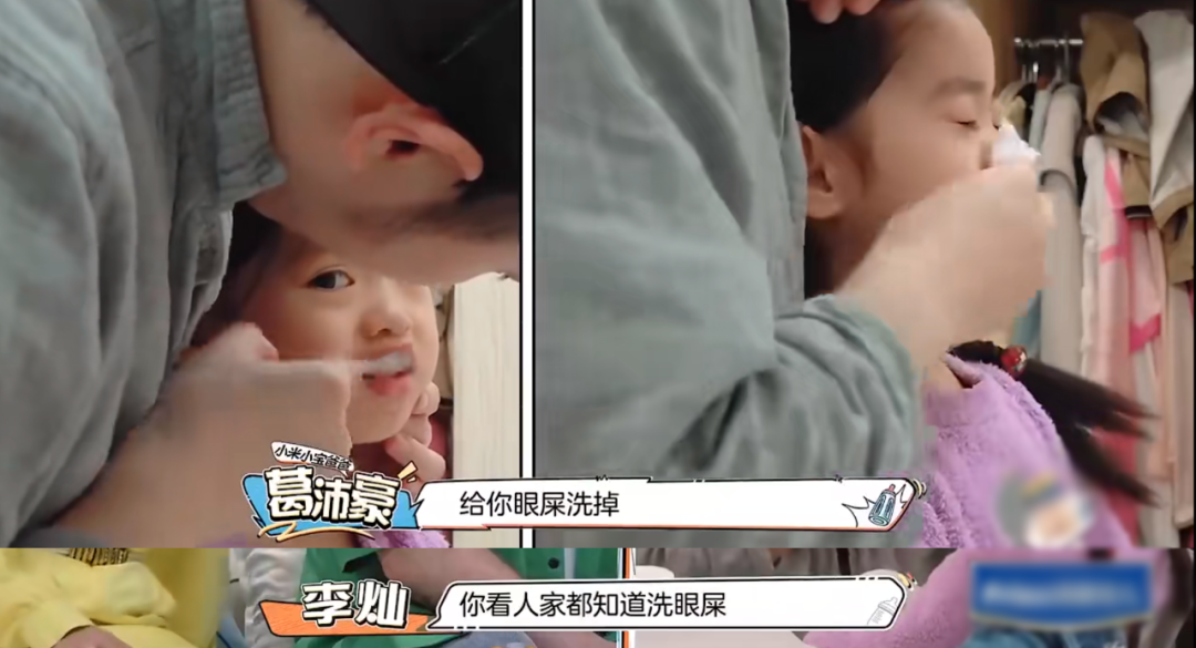 其他爸爸才知道:原来早上要注意给孩子拭去眼屎的。