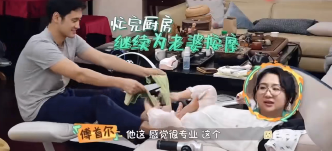 他没有把照顾孩子当作是妻子的责任,不仅会在工作闲余时间包揽家务,体谅张歆艺,帮她放松肩颈;