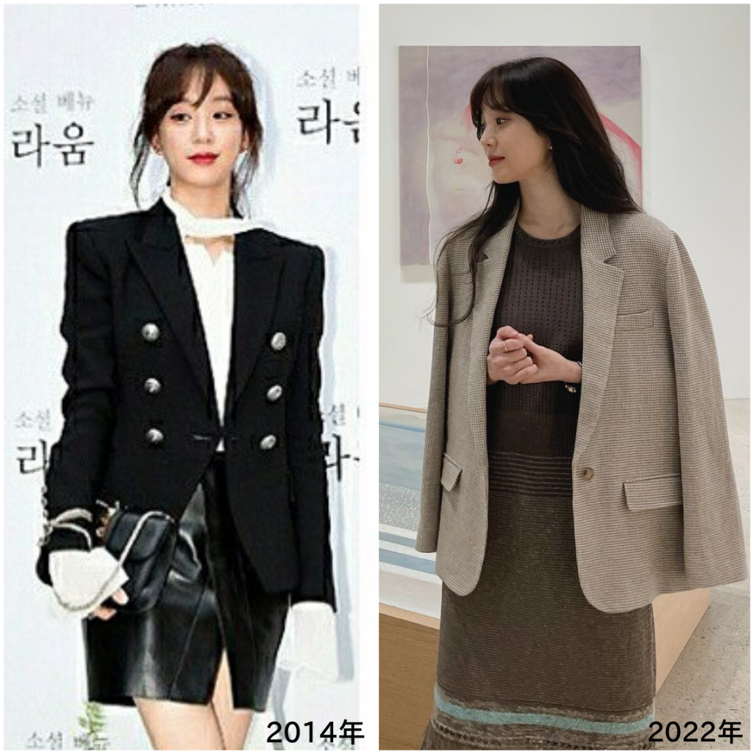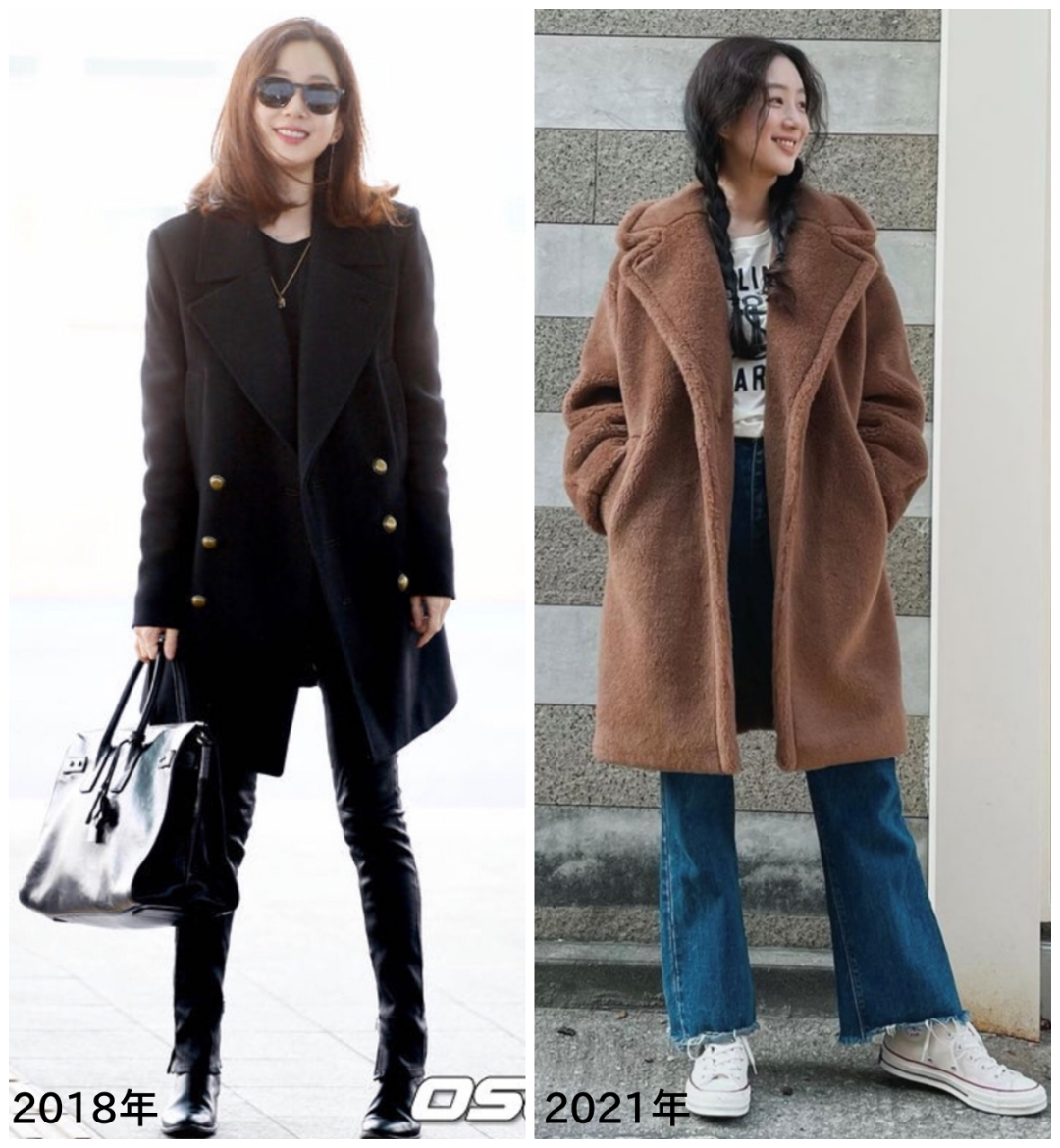 我把郑丽媛的ins翻了个遍,发现近10年间,她的秋冬外套逐渐“变宽变长”,爱穿的款式也基本稳定下来了。 她私底下穿的西装都是大宽肩,能很好地调整头肩比,显得头和脸好小。 左边这种垫肩西装就过于板正和精致了,肩线稍微往下落一点的H型西装,更放松自然,长度在大腿中间或者再往上一点点的位置更适合她。▼ 风衣和大衣也都是类似的款式,面料硬挺利落,质感很好。宽肩线+落肩+微茧型的长风衣和大衣更慵懒放松,也是近几年比较流行的款式。▼ 这种肩线比较利落的大衣她也穿过,去参加正式一些的活动也是好看的,更正式和帅气。▼ 裤子大部分也都是宽松款。 她几年前爱穿的紧身裤基本都淘汰了,现在穿直筒裤和老爹裤比较多。▼ 想要穿得舒服、随性,在层次上要做减法。 无论是郑丽媛、金高银还是走类似风格的博主们,都很少叠穿很多层,大部分时候都是简单的一层内搭+外套。做个对比,左边叠穿了很多特别的单品,有种叛逆的感觉,比较有风格,右边的偏舒适简约。▼ 偶尔加一顶帽子或者一条围巾。▼