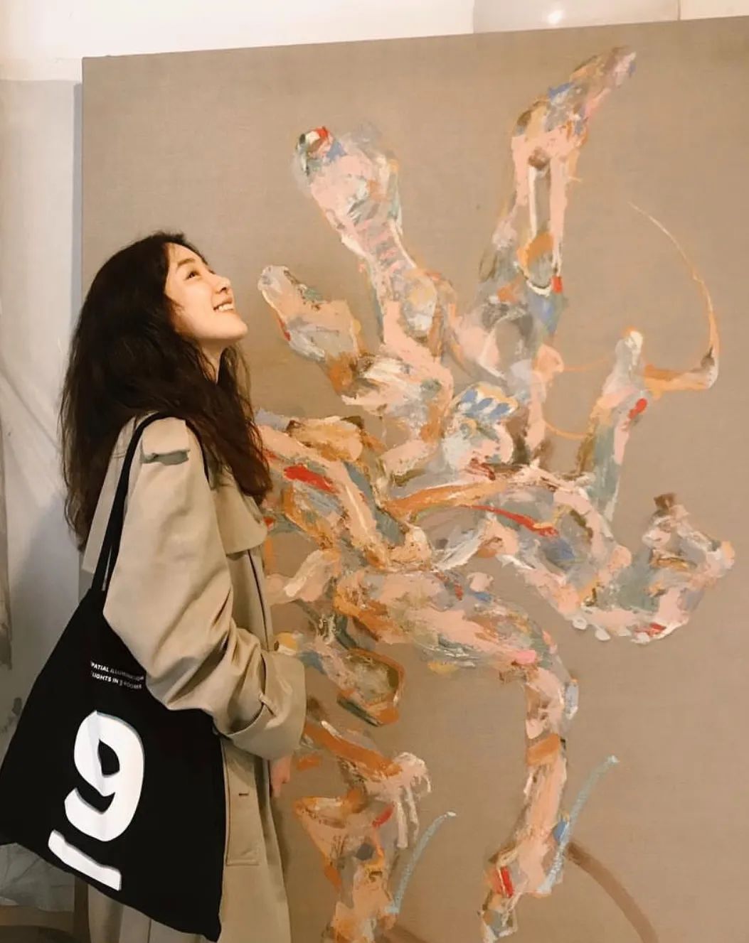 喜欢背大包,穿平底鞋,爱混搭平价的单品 她跟很多韩国女明星还有一个很不一样的地方:喜欢混搭平价的单品,一些衣服、包包、鞋子都是百元级或者小几千的,比较接地气。 她爱背的包也非常随性,喏,就是这个帆布袋,私下和朋友们一起看展拍照经常背它,一背就是好几年。▼ 帆布袋确实看起来更随性,算是跟她的风衣锁死了。▼