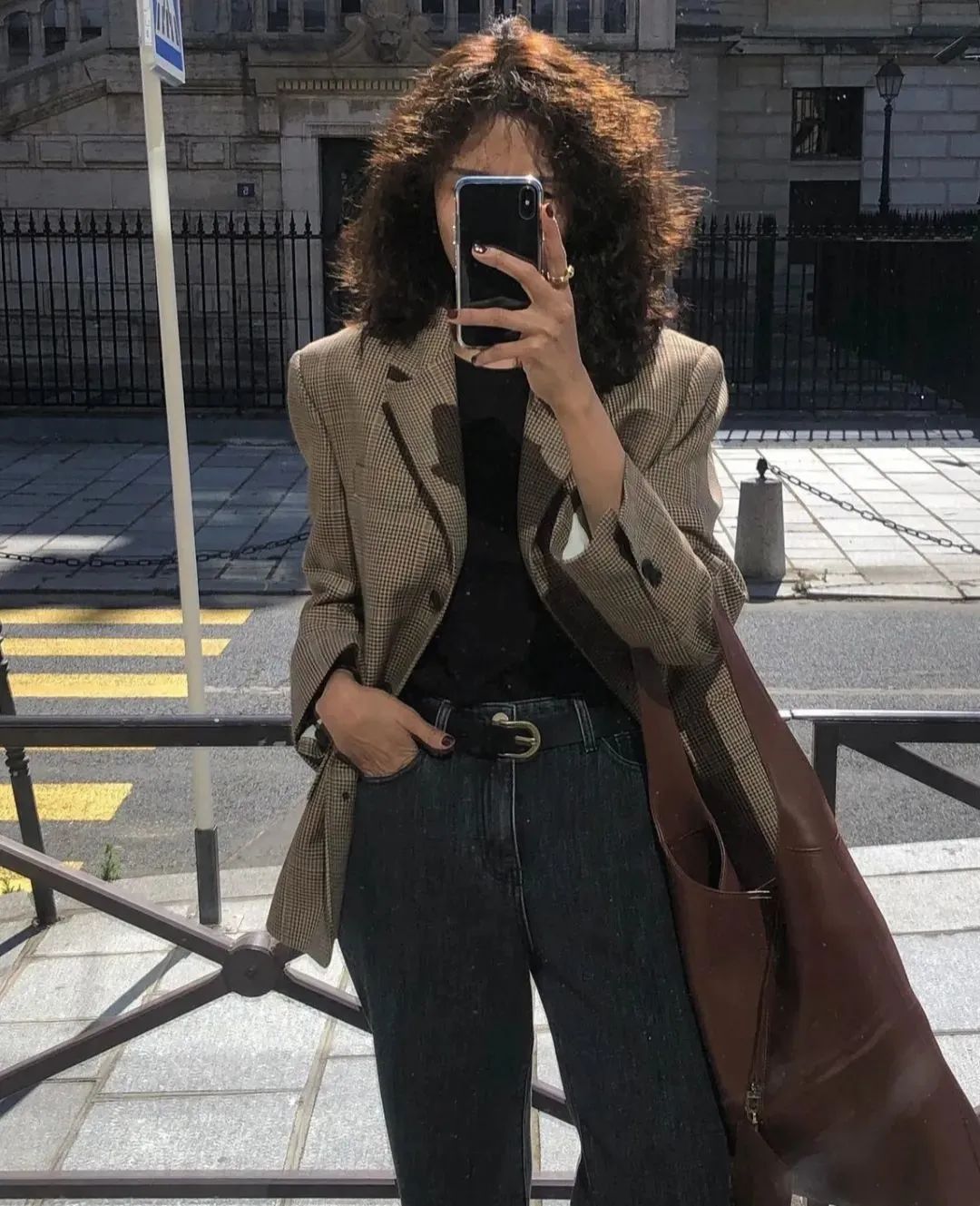 如果衣服是黑白素色,就会拎一只棕色包包,这个组合她百用不厌。▼ 大地色系的格纹单品她也经常穿。▼ 这件威尔士亲王格的西装利用率还挺高的,她还试过用它混搭花裙子,两个单品的色调比较相近,还蛮和谐。▼