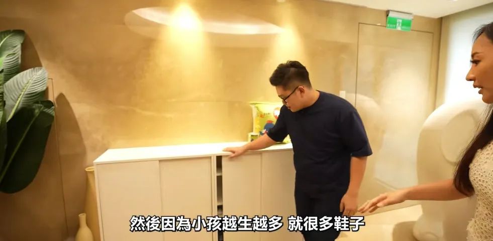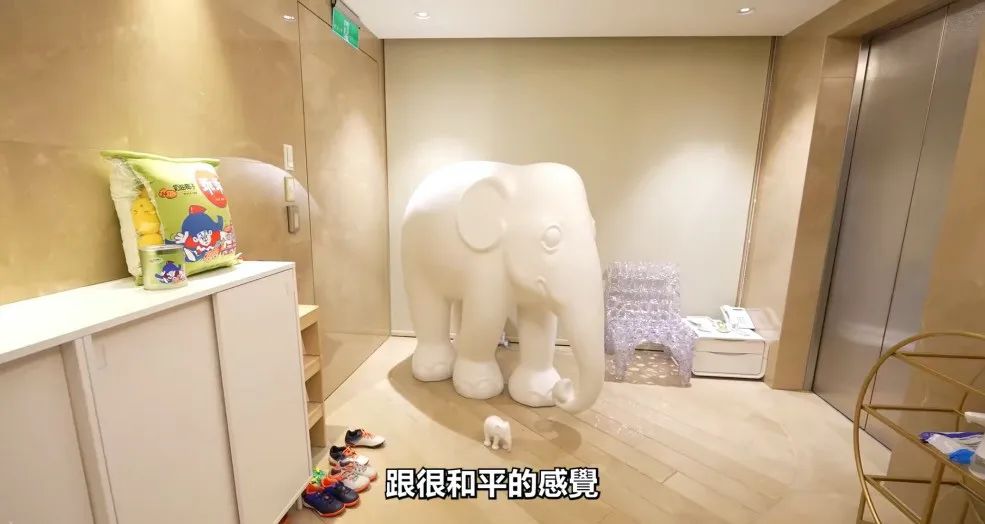 关颖这个人,不出名。 早年间,她因出演《天国的嫁衣》里名模卡翠娜小红了一下。 后来又连着拍了几部偶像剧,角色几乎都是白富美女二。 很多人说,关颖把那些剧里的「白富美」,诠释得极好。 其实,她几乎是本色出演着这些角色,因为在现实生活中,关颖本身就是个千金小姐—— 爸爸陈国和是白手起家的典范人物,与弟弟陈士元联手创立了日盛证券,在金融界赫赫有名,妈妈蔡淑媛是台湾首富蔡万春的掌上明珠小女儿。 在台湾的名媛圈里,她更是妥妥的C位,哪怕是一个简单的vlog,也能清楚地看到她领头人的身份。 但关颖很抵触大家给她贴上「名媛」、「上流社会」等标签。 每次她出席活动的时候,经纪人都要再三提醒记者:“绝对不要拿她出身豪门的背景,来作为采访的话题,那样她会生气。” 是的,她的确和别的名媛不一样。 在不少名媛都很注重形象的时候,她可以毫不在意别人眼光,看起来相当接地气,甚至会在采访节目里,当众脱鞋跟小S比谁脚更臭…… 除此之外,这个豪门出身的大小姐,还特别不怕折腾与麻烦。 一家五口住的480㎡大平层,是她亲自操刀布置出来的,大到空间布局,小到家具材质,每个细节都被拿捏得恰到好处。 前段时间,她还接受了一档探家节目的采访,将自己的装修经验,分享给了大家。 两梯一户双玄关 “你家真的很夸张哎!!!” 饶是看惯了豪宅的主持人,在进入关颖的家后,都忍不住尖叫出声。 但事实上,关颖家的「夸张感」,只是体现在视觉面积的冲击上(毕竟是个480㎡、坐拥2个电梯的大平层),她家给人更大的感受,是生活气息与舒适度极高,完全不像人们刻板印象中的豪宅。 电梯一走出来,首先是外玄关。 这里大理石元素占比很大,为了避免整个空间显得太冰冷沉重,她便选用了大地色系的大理石,视觉上看起来很是温馨。 天花板做了圆弧形吊顶,柔和的线条弱化了空间中大量竖线条的凌厉感,辅以简单的柜体和摆件,营造出和谐、舒适的归家氛围。 外玄关的收纳空间不多,仅以满足进出门时的基本需求为主。 靠墙的白色鞋柜,还是后来因为家里小孩越来越多,有很多鞋子需要收纳,才补充摆放的。 鞋柜对面的移动金属展示柜是某宝淘的,价格很便宜。 在关颖看来,家里的物品不一定要多奢华昂贵,只要好看、好用、自己喜欢就够了。 整个空间中最吸睛的,是落地窗前摆放的白色大象。 关颖很喜欢象,因为它总是能给人带来一种很舒服、很平静的感觉。 所以「象元素」,几乎贯穿了她的整个家。 外玄关与内玄关,以一扇厚重的电动实木移门相隔。 打开实木门左侧的密码锁,便正式进入了室内空间。 首先映入眼帘的,是一个抽象大象的艺术装饰,它很有设计感,有点像图腾,让整个家都高级了起来。