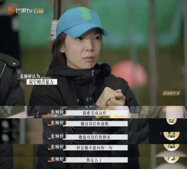 参加节目,当着所有人的面,张婉婷称宋宁峰“罪人”。 她反复控诉着“罪人”的罪证。 譬如说,他的“冷暴力”。 “在难受的时候,他可以递水、递纸巾,但就是不问你一句怎么了?”。 譬如说,他的“不优秀”。 “这么穷,又不红,又没本事”。 在大家聊到选伴侣的眼光时,张婉婷直接挖苦老公是拖油瓶:
