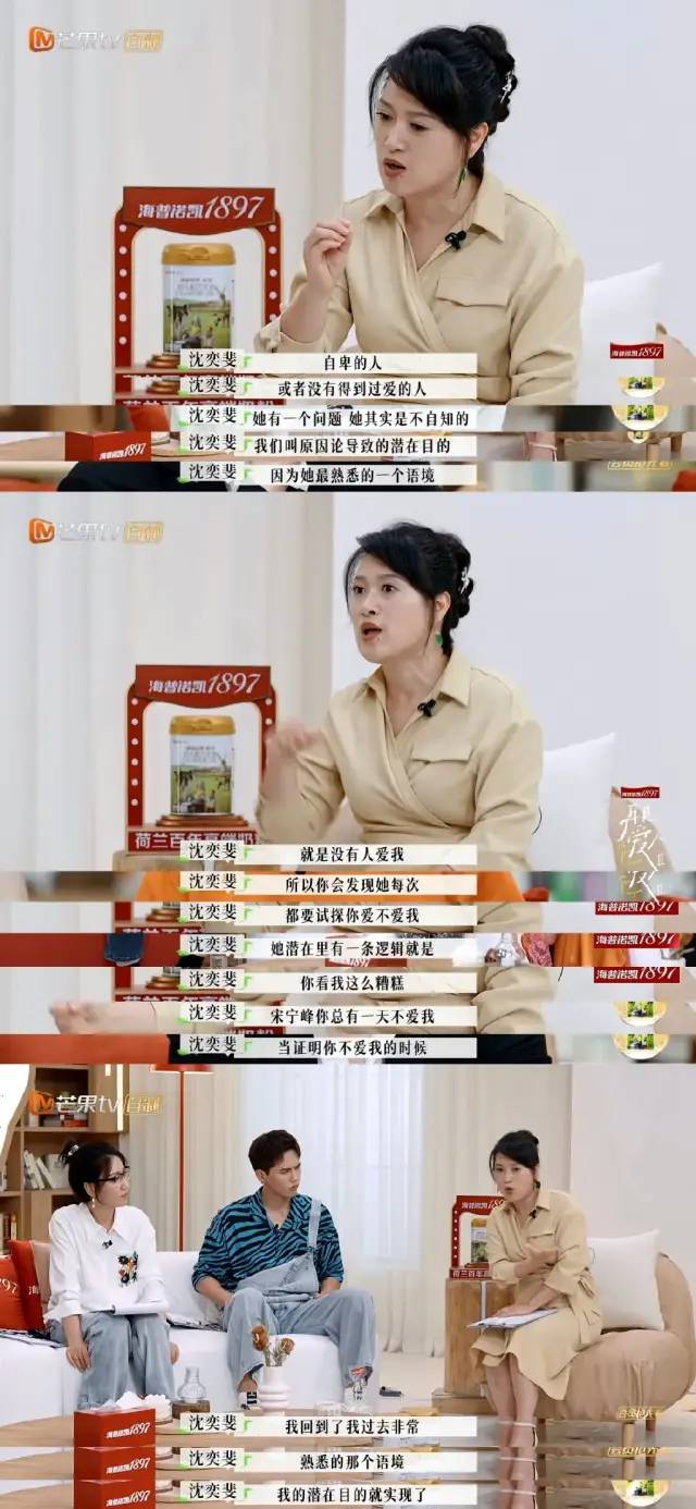 在节目里,她也只叫他宋宁。 因为前妻冠的“峰”字,她心里应该是膈应的。 张婉婷怀孕六七个月的时候,曾经发过一条微博,第一句话就是:我知道,我也感觉得到,其实你没那么爱我。 宋宁峰将最意气风发的七年,最炽热的爱,毫无保留的奉献给了齐溪,所以现在的这个不那么冲动、不那么意气风发的男人,张婉婷才会觉得他“冷漠”。 本质上,她或许也想要一份义无反顾的爱情,如同宋宁峰给予齐溪的那样。 她潜意识里将宋宁峰视为自己快乐的来源,也希望宋宁峰必须通过她获得快乐,所以才对和宋宁峰一起玩飞盘的卢歌、以及帮宋宁峰说话的黄觉,有着这么大的敌意。 她在通过树立自己受害者形象、以及反复PUA丈夫的社交圈、言语行为,来避免自己陷入被孤立的尴尬境遇。