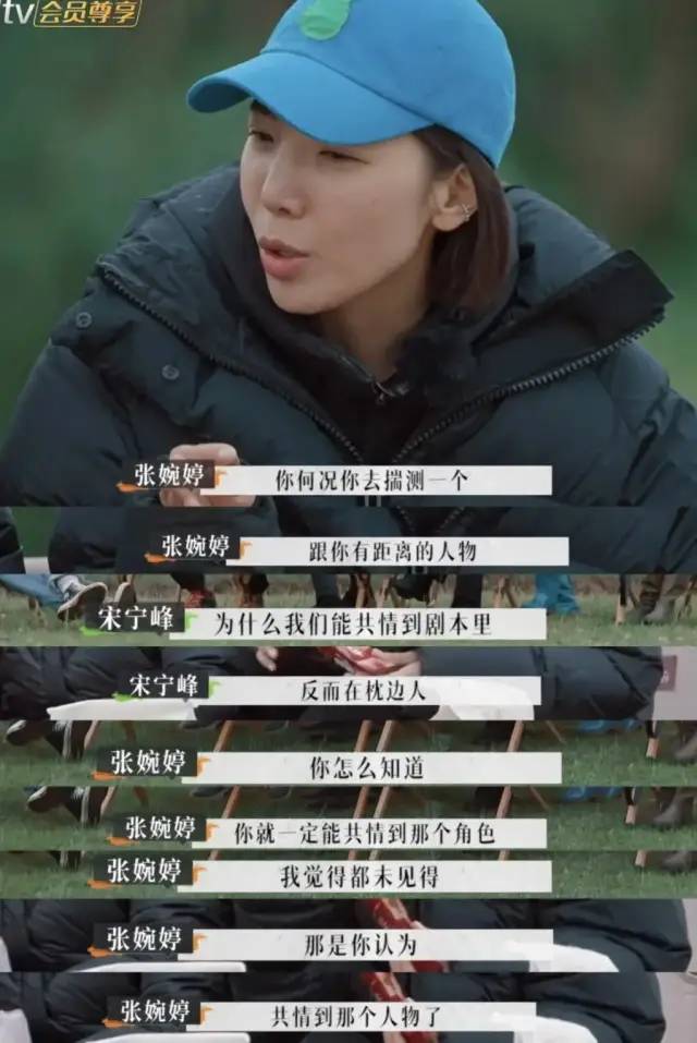 张婉婷不允许任何人向着宋宁峰说话。 当卢歌替宋宁峰解释艺术从业者有时候会因为要投入角色而忽略身边人时,张婉婷回怼:“你是一个演员,你洞察不到我的情绪,你怎么演戏?”。