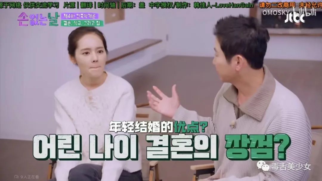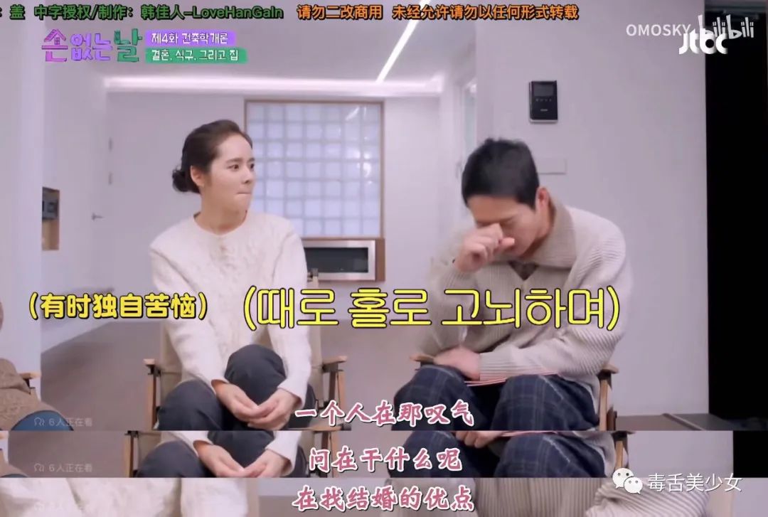 24岁结婚, 如今已是40代(状态很不错)👇 因为带娃进入了倦怠期, 韩佳人正式复出工作了。 在节目里, 谈到了一些婚姻家庭相关的话题。 与原本想象中的秀恩爱不同, 虽然她和延政勋一直被说是韩娱模范夫妻, 但提到早婚的好处, 她的反应, 抿嘴👇 “吧”一声放开。 然后转头在思索中, 再次抿嘴“吧”一声。 思索失败, 就又重复了次。给旁边人都逗笑了  找了18年, 没有找到一个优点? 当初在人气高涨的时候早早步入婚姻, 说会展现出幸福的样子! 但是最近节目真的🥺 总是引发猜测! 聊到周末夫妇, 别人是觉得聚少离多不大好, 但她, 说周末夫妇是三代积德才能实现的啊看起来超级向往呢  每周只期待周五的原因? 正是她老公要去录节目。 还有, 若有来世,她的选择是不婚。 想体验一下独自帅气地生活。 而若女儿未来选择不恋不婚的话, 她也是支持的。 “爱一个人是很辛苦的事情” 没有那种人生必须经过什么过程才完整的想法👇 她觉得这只是一种选择。 综上, 似乎容易给人一种婚姻不是很幸福的感觉? 经常看到类似评论。 但实际上, 她和她老公结婚多年来都没什么狗血负面。 她说过她老公从来不发脾气, 分享的日常细节也挺有趣的, 不像怨偶类型。 或许, 有些发言,也是种综艺效果吧