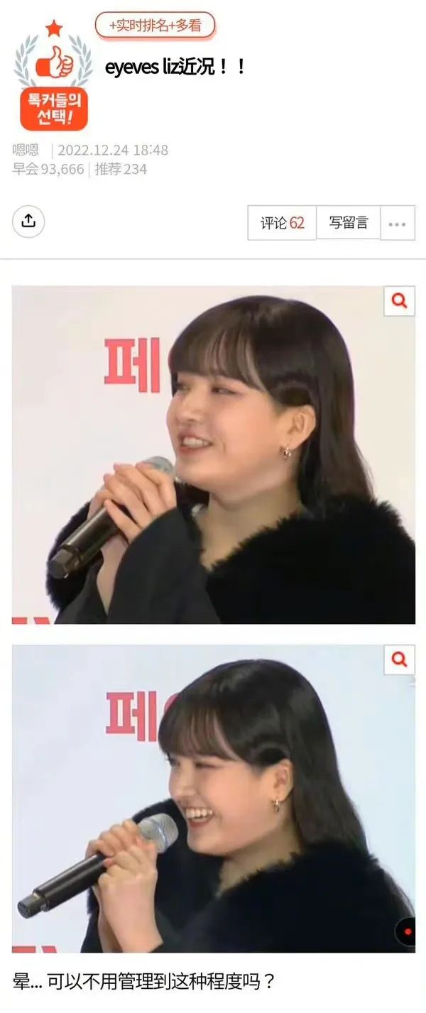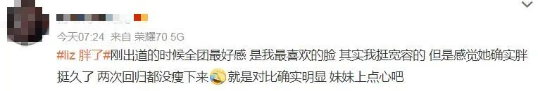 出道时有多惊艳,现在就有多无奈。 Liz,韩国女团IVE的成员。 04年的妹妹,组合刚成团时发布的公示照,至今让我念念不忘。 精致得像个芭比娃娃。 组合在2021年12月出道,活动时间才一年多。 相比于其他成员始终保持的好状态,Liz却一直被“肥胖”这个问题所困扰。 一开始,即使脸上还是明显的婴儿肥,但身材是纤细苗条的。 软萌可爱气息拉满。 但不知不觉间,持续横向发展。 去年年底,就因不达标的身材管理而登上了韩网热搜。 最近参加首尔歌谣大赏,又被群嘲了。 脸更圆润了,几乎看不到下巴。 身材,感觉已经达到了自身的肥胖巅峰。 与队友们同框,对比更为惨烈。 虽然依然有粉丝表示宽容,甚至觉得“胖了也可爱”。 但更多的网友则觉得,这身材和状态,作为爱豆确实是不合格的,妹妹真的要下定决心,努力减肥了。 有的粉丝解释说“妹妹还处在发育期”; 但出生于04年的她,今年也即将19岁了,基本过了疯狂长身体、体重不受控制的青春期。 而且,看看同年龄段的其他妹妹,为什么她们就可以做到严格管理身材? 03年的安宥真↓ 04年的张元英↓ 04年的直井怜↓ 07年的李瑞(她才是真的正处在于青春期)↓ 还有粉丝表示对爱豆严格要求身材,是赤裸裸的“身材焦虑”“畸形审美”。 但有一说一,爱豆这个职业就是贩卖青春与梦想,外形是他们吸粉与涨人气的利器。 “吃这碗饭就要遵循这行规矩”,没什么好抱怨的。 看看“女团神话”少女时代,出道十几年了,颜值与身材依旧能打。 A Pink也是谁都没有拉胯。 T-ara,组合命运浮浮沉沉,但她们对自身的要求从来没有降低。 感觉早期女团是最为自觉与自律的。 对于自己的职业有清晰的认知,满腔的热爱,总是以最好的面貌来回馈粉丝,也因此铸就了她们长盛不衰的奇迹。 而且身材对一个人的颜值也有着极其重要的作用。 瘦下来之后,你会发现一个全新的世界; 而且对爱豆来说,身材管理合格了,自身的五官与气质也会发生脱胎换骨的变化; 人气与商业资源也随之暴涨,是互惠互利的事情。 来看看女爱豆们减肥的前后对比。 “国民初恋”秀智↓ TWICE的队长朴志效↓