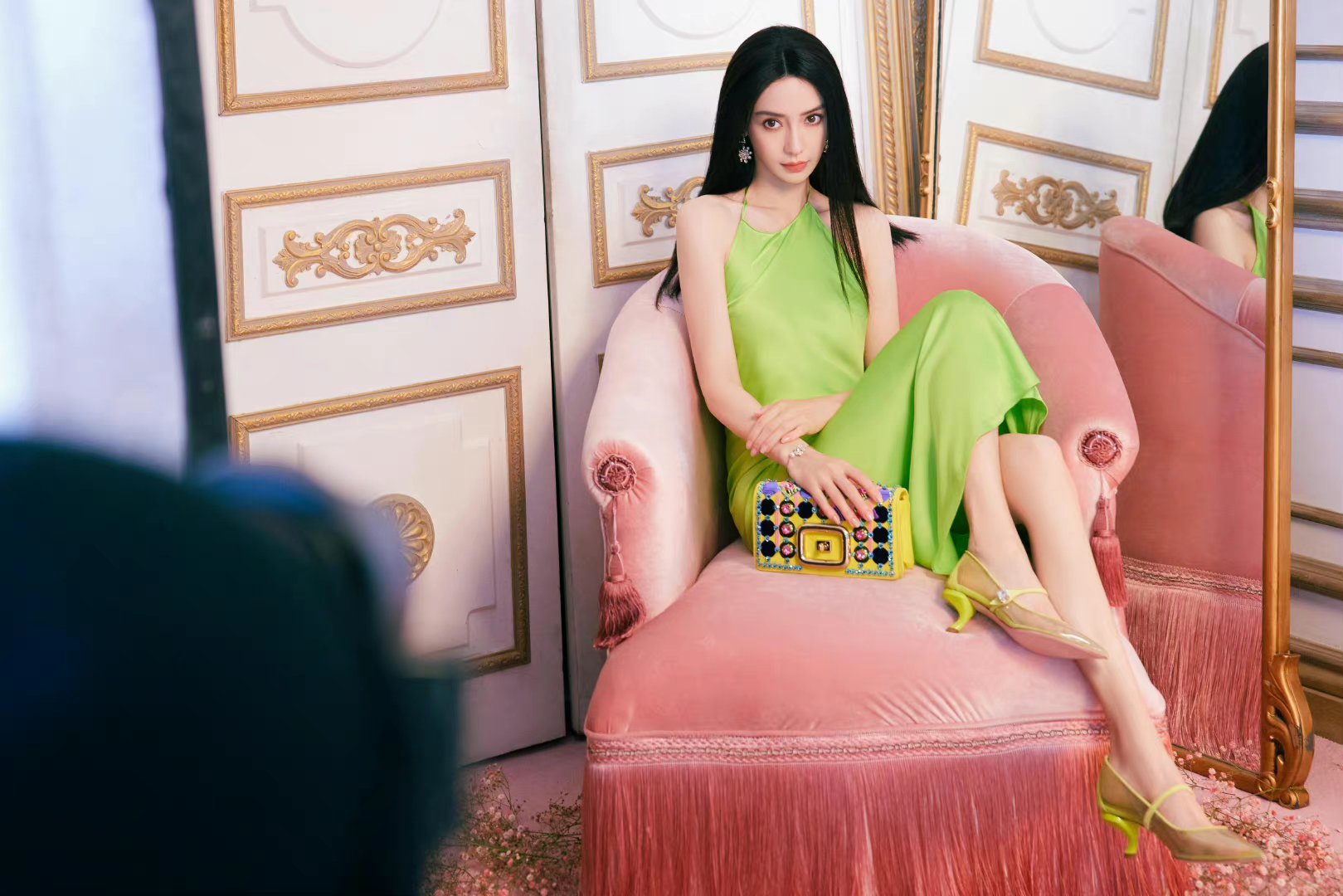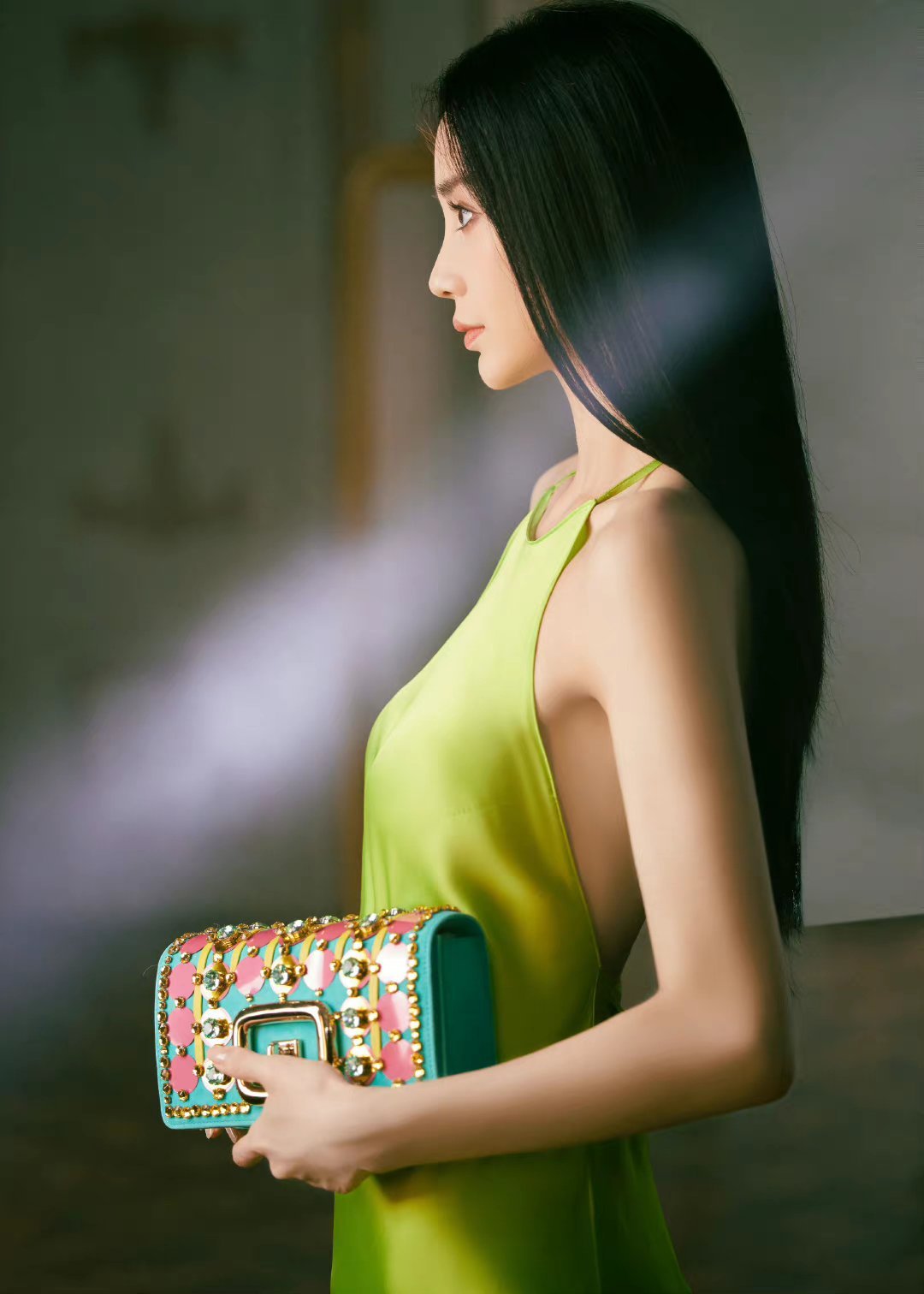 Angelababy绿色露背缎面裙造型 哇!这也太美太惊艳了,绿色露背缎面裙+黑长直好美艳,简直摄人心魄好吗