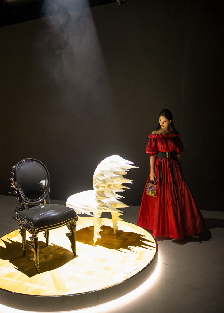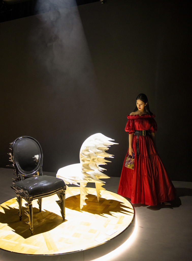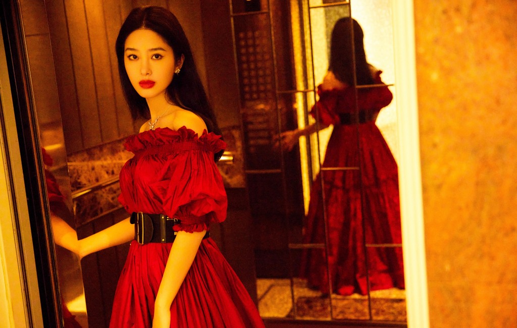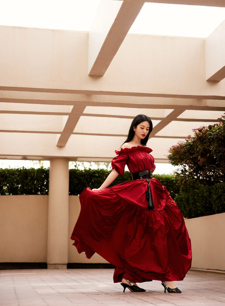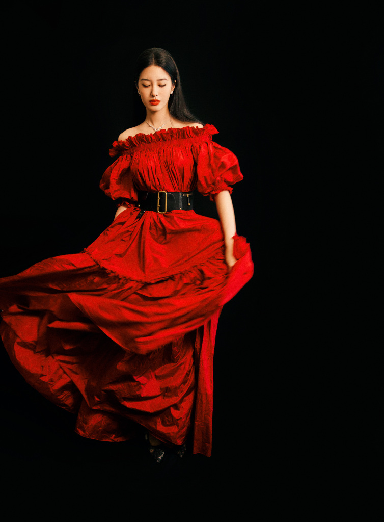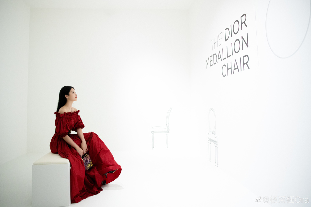 杨采钰露一字肩出席Dior艺术展 烈焰红裙造型写真美艳养眼[22P]