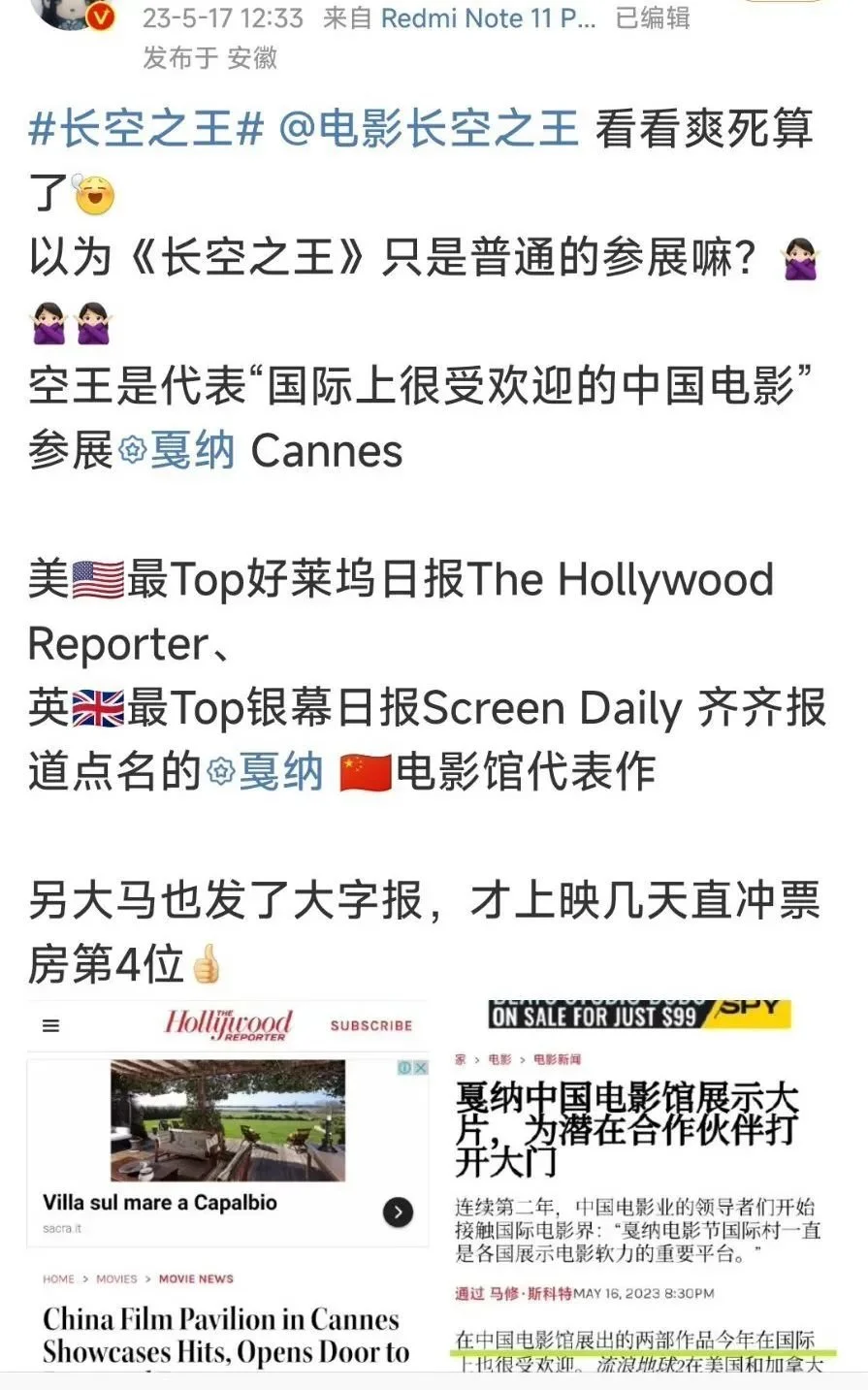 即便不去戛纳,也不妨碍粉丝吹战报。 王一博,本人没去,但两部电影都去了