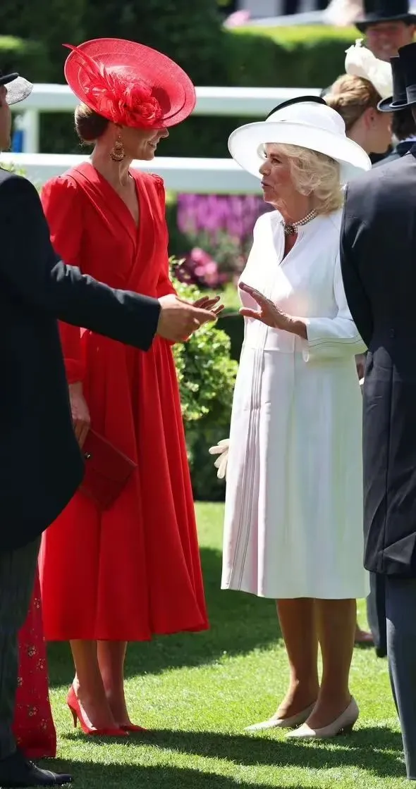 今年赛马会的撞衫比比皆是,两个和凯特很有渊源的女人就巧合地选择了同一条印花裙。