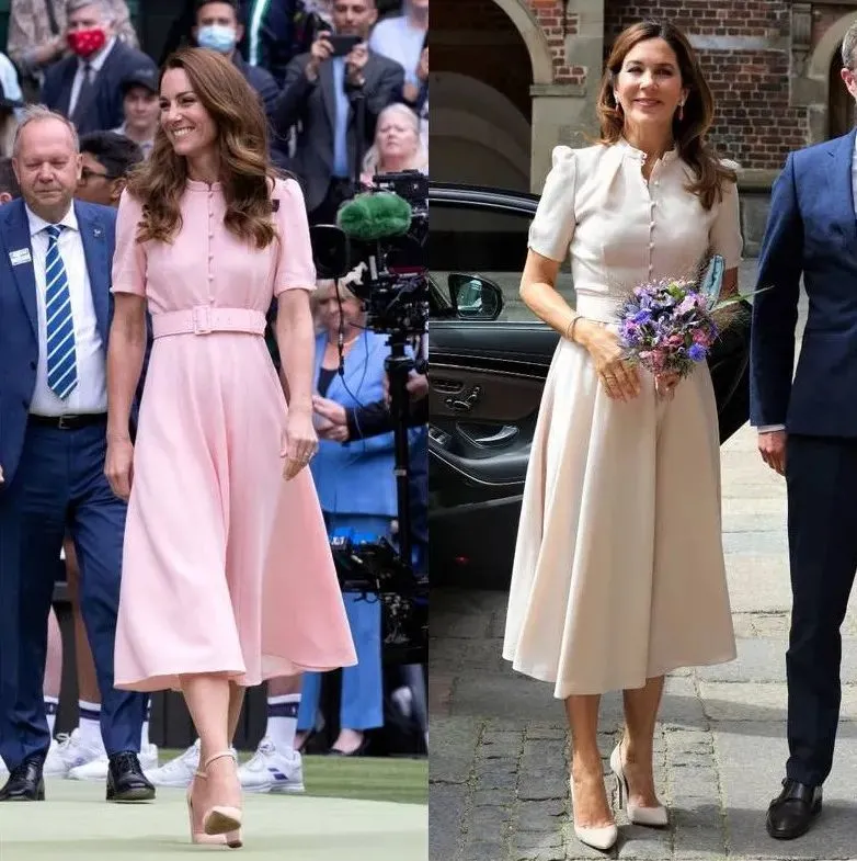 除了粉色系,还有很多王室女性会穿清爽的蓝色系,在夏日显得清新又高级。