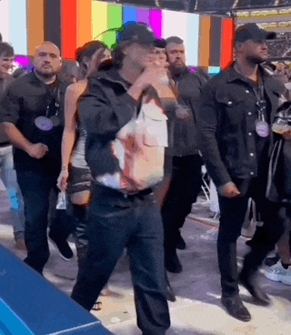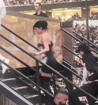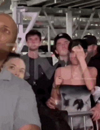 (哈里去了另一场) 贝佐斯和未婚妻,还有卡戴珊一家 金姐带着大女儿,三姐科勒带着大姐考特妮的女儿 结果在场的观众还拍到了令人惊奇的一幕:凯莉·詹娜居然和提莫西·查拉梅(甜茶)在现场亲亲抱抱?! 他们跟在凯莉的姐姐肯豆·詹娜旁边,在快开场前走进了站立区。