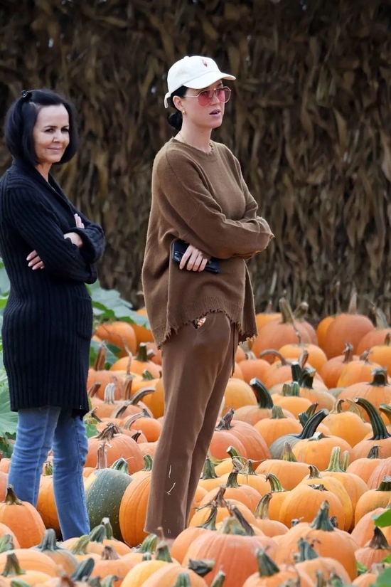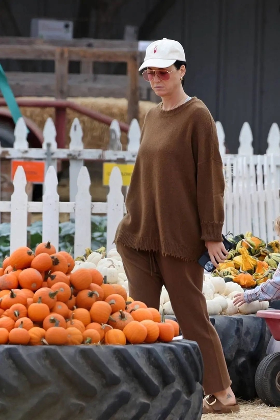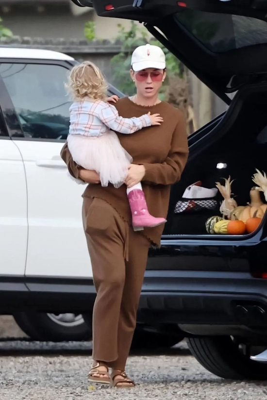 水果姐带着女儿黛西一起选装饰品🎃,特意搭了个咖色套装,很好地融入进了这片南瓜地~