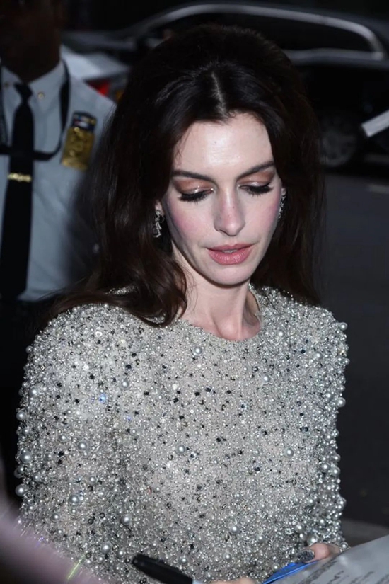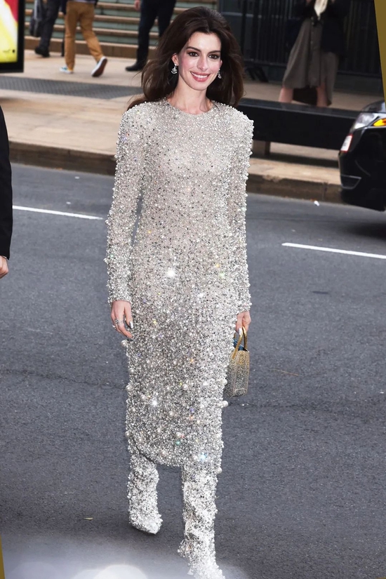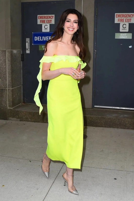 首先是Anne Hathaway,她在多个场合展现了不俗的时尚品味。在纽约的一个活动中,她身着Valentino高定战袍,这件衣服上布满了Bling Bling的珍珠和亮片刺绣,非常引人注目。另外,她还参加了《安迪科恩现场直播》的录制,穿着一件荧光色的连衣裙,裙子的飘逸丝带荷叶边和高开衩设计让她看起来十分性感。在另一场电影节上,她则选择了一套黑白廓形西装,搭配及膝直筒靴,造型既干练又带有几分性感。