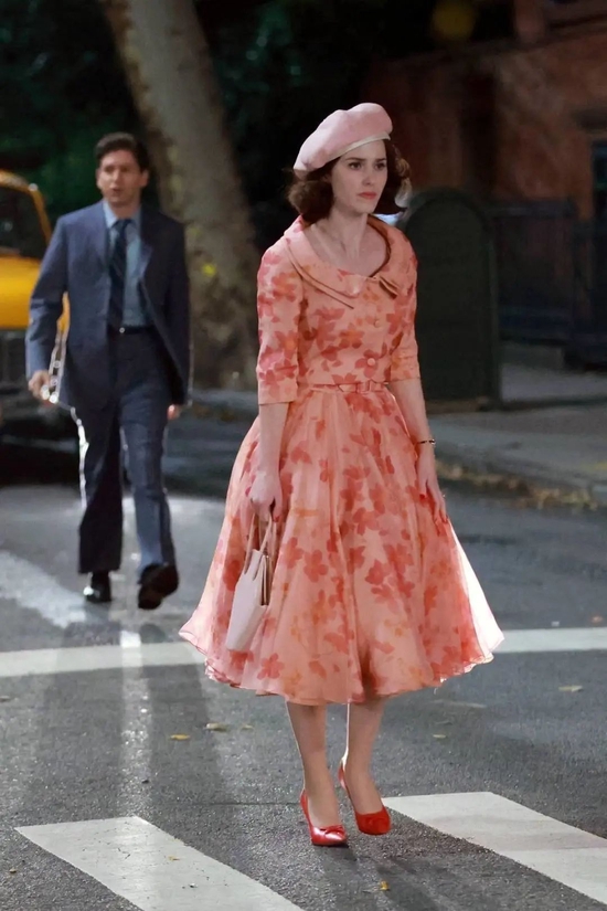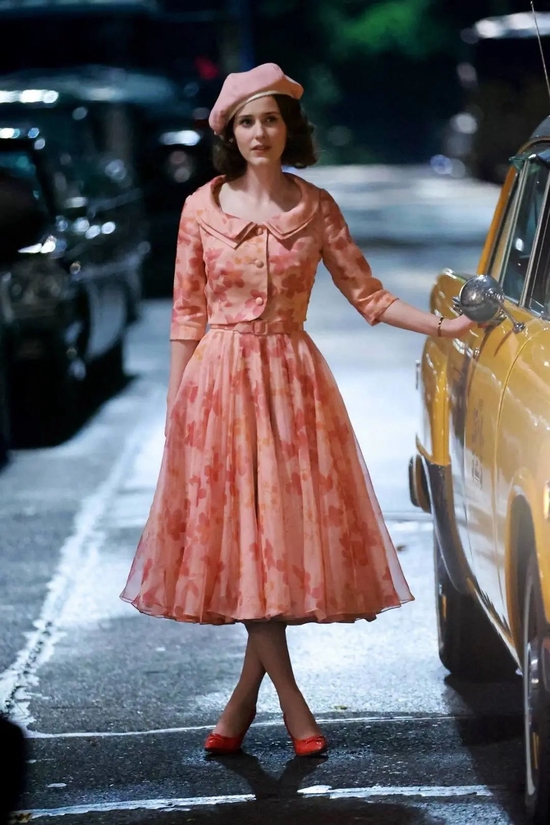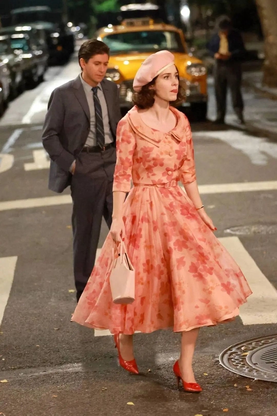 最新一季《了不起的麦瑟尔夫人》剧照来咯。Rachel这樱花裙也太粉嫩了吧,跟Yellow cab组合起来很纽约!