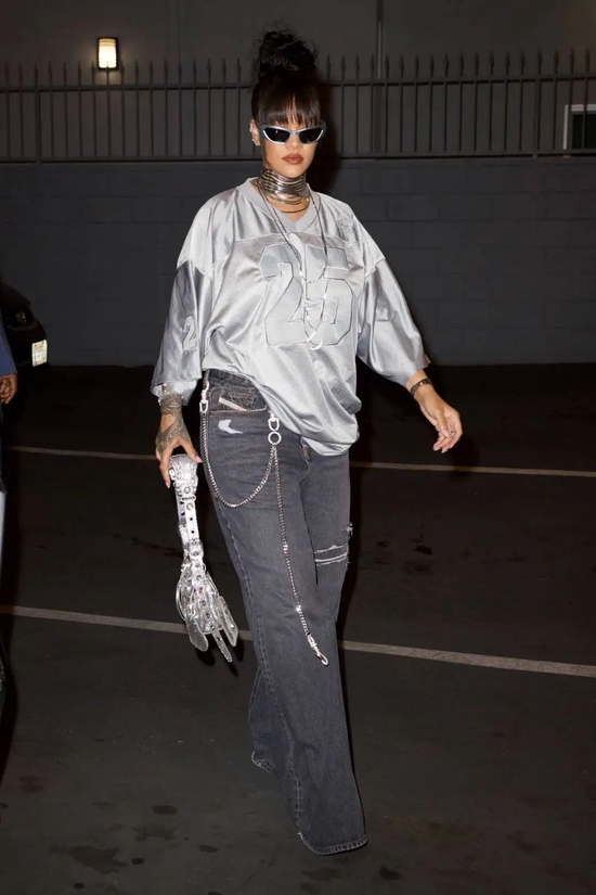 这套银灰色系LOOK是真好看,未来感时髦辣妈舍我其谁。