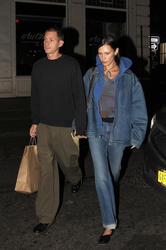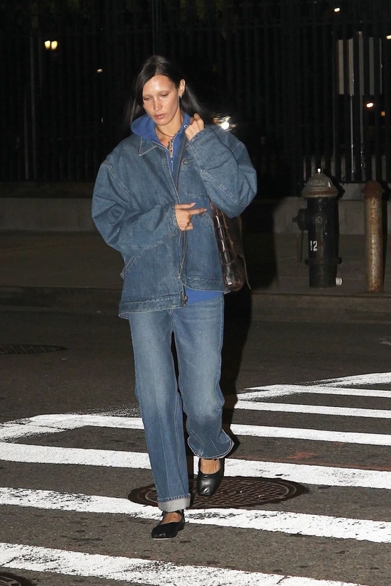牛仔贝拉和男友深夜出门牵手压马路,两人真是越来越有夫妻相了。贝拉最近好爱这双芭蕾舞鞋,出镜好几次了呢。