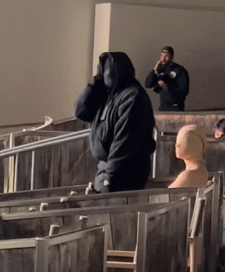 时装周中途还放了侃爷的歌,他听到自己的歌就抑制不住兴奋地跟着背景音乐的节奏摇摆。 比安卡就在旁边坐着看着他,随着他一道摆,画面诡异的同时又有种熟悉的感觉。 这造型像极了金上次去Met Gala的黑布蒙全身,让一些网友感觉这又是侃爷的一次“菀菀类金”。