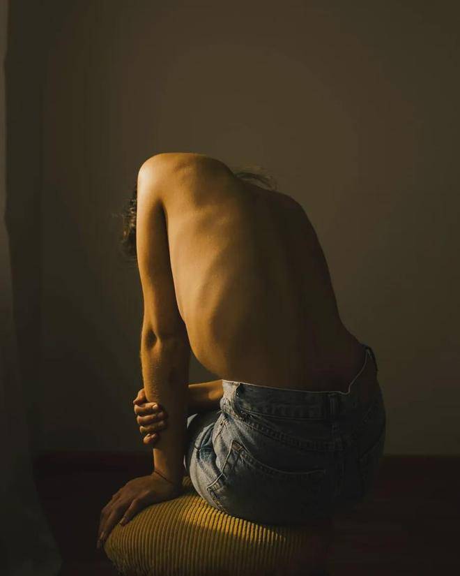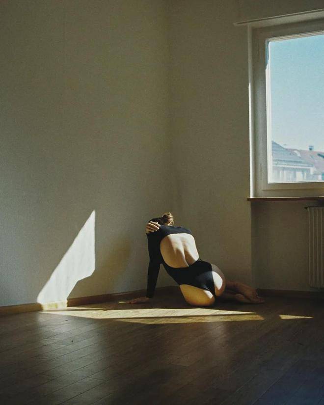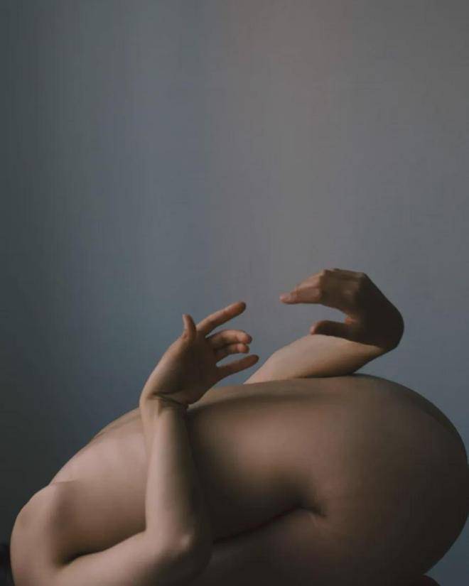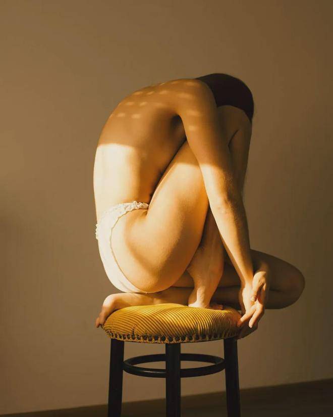 尚塔尔通过自然光与低饱和色调的结合,将女性身体转化为流动的光影雕塑。她偏爱在清晨或黄昏拍摄,利用柔和光线勾勒身体曲线,同时用单色背景强化线条张力,使画面既有古典油画的静谧,又具现代摄影的抽象感。其代表作《肌肤的低语》系列,通过特写手部、背部等局部,捕捉皮肤在光影中的纹理变化,仿佛在诉说身体与世界的私密低语。