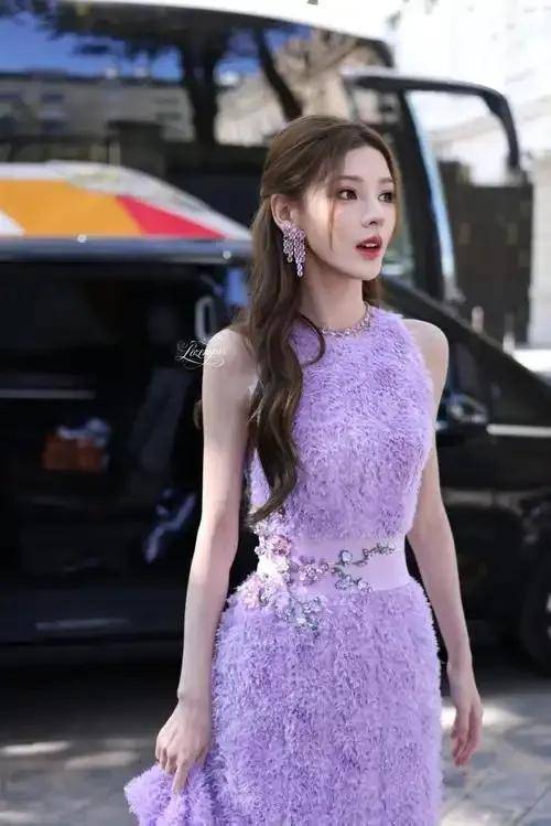 最近,巴黎时装周上,张予曦以一袭梦幻紫无袖花朵长裙亮相(品牌为LA KORADIOR),冷白皮与立体花瓣设计相映,搭配施华洛世奇珠宝,这位女星俏脸清丽,五官精致,长发披肩,肌肤白皙如雪,大秀曼妙的身材曲线,因此很多粉丝都在嚷嚷“张予曦出个国怎么美成这样?”