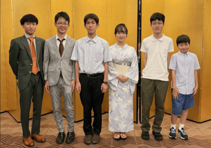 三岛响与大阪职业棋手的合照(左起小西理章三段、表悠斗三段、三户秀平四段、三岛响二段、后藤一二段、藤田怜央初段)。