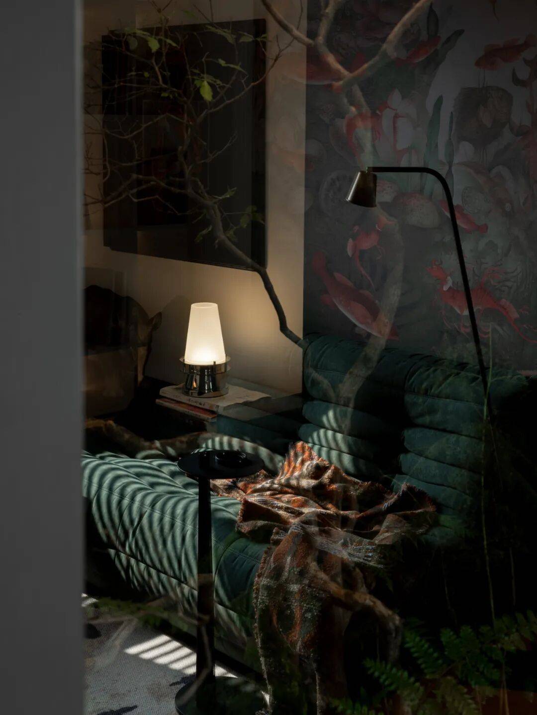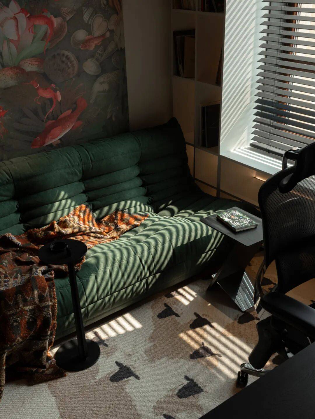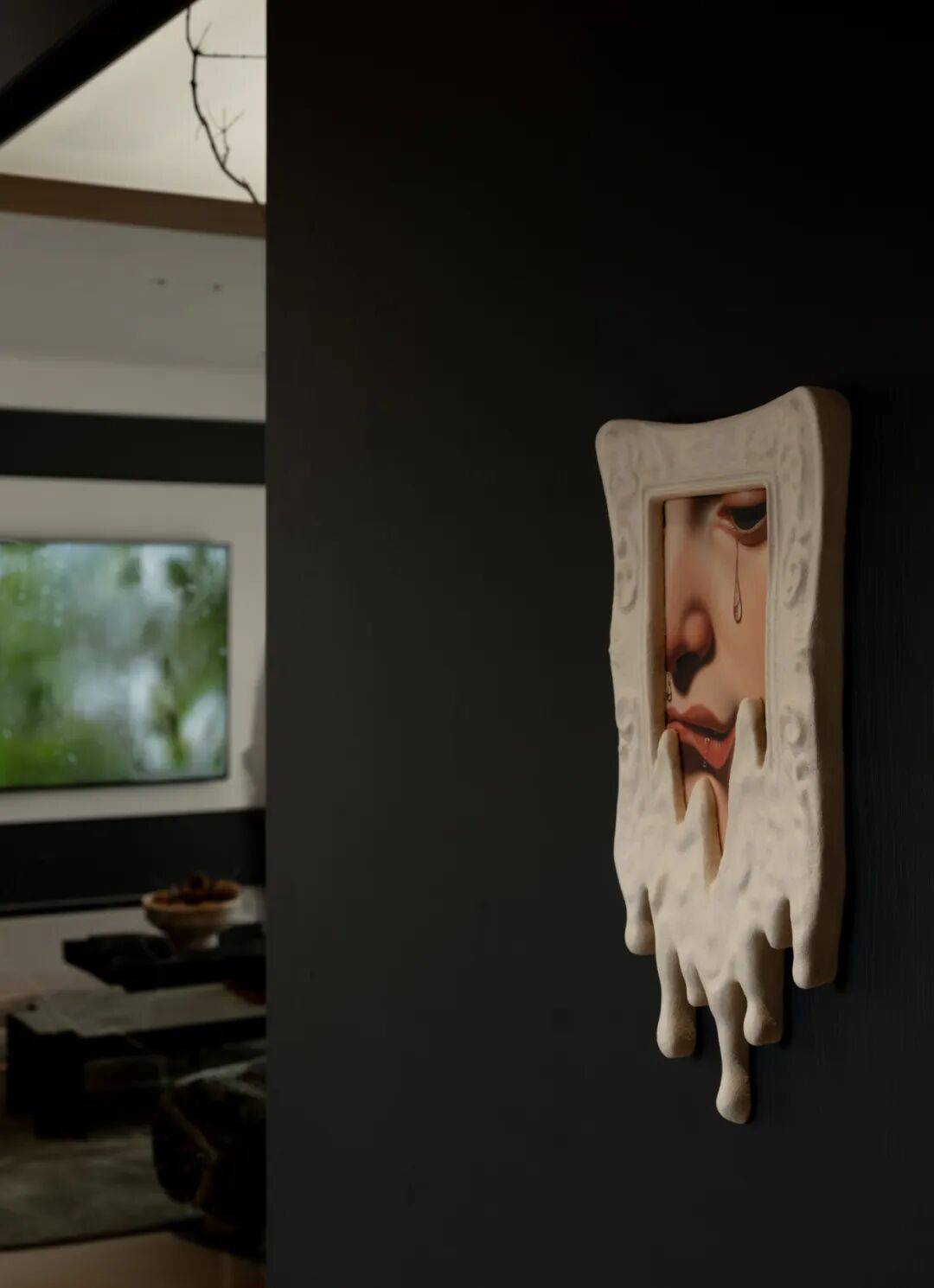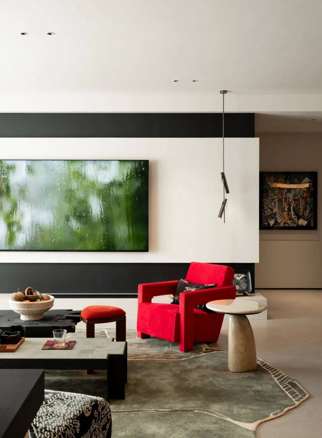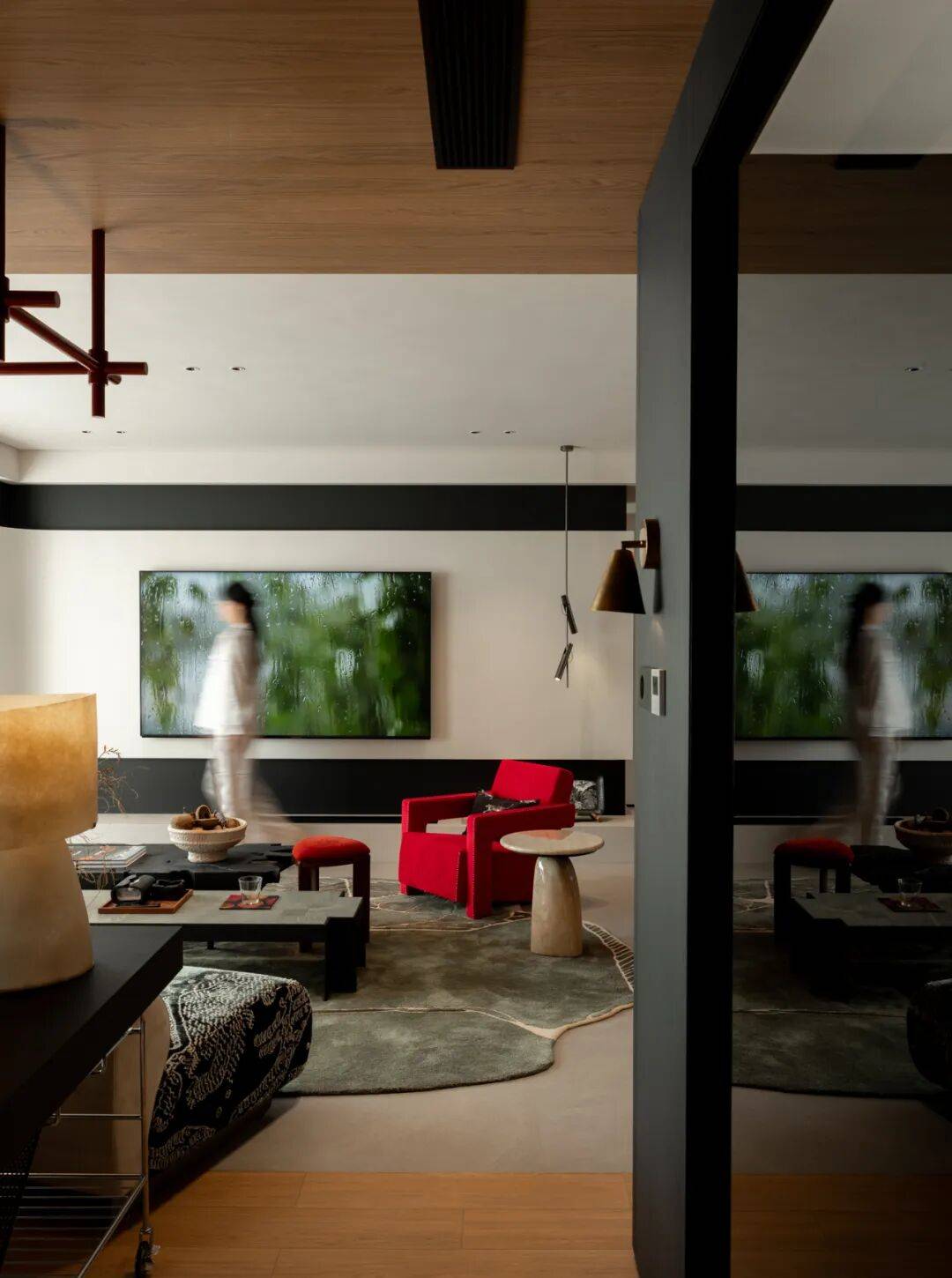 GuangHe Design ©摄影: 图派视觉 客厅|目之所及,皆是温暖 晨光漫过纱帘,轻落于木质壁纸之上,温厚的肌理在光中舒展。沙发以柔软的质感与细腻的纹理,成为空间温柔的锚点。一旁的龟背竹在光影间悄然苏醒,宽展的叶片与墙上的挂画、几上的摆饰轻声对话,勾勒出日常中不动声色的诗意。 当器物之美回归生活,最动人的风景,原来始终在身边。