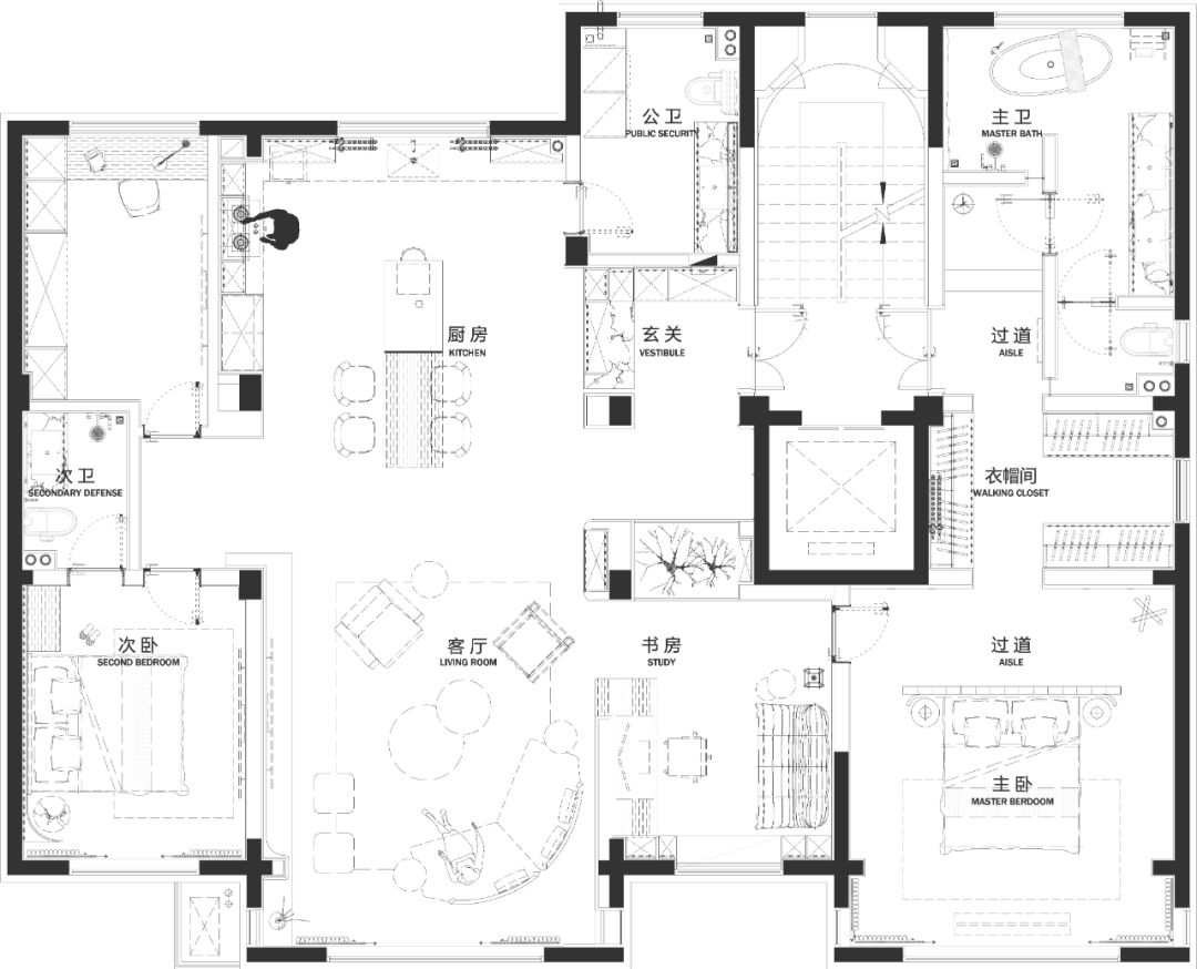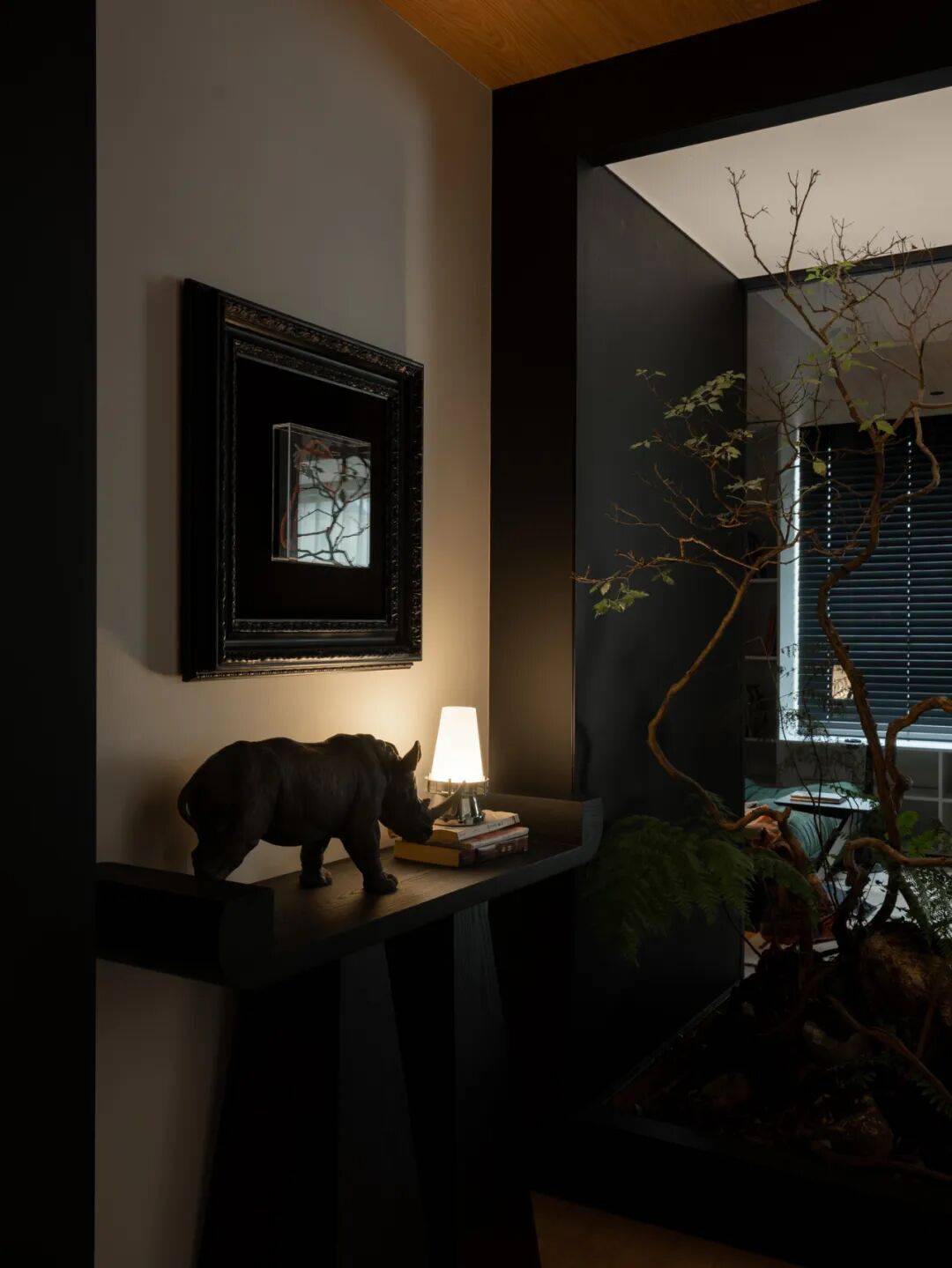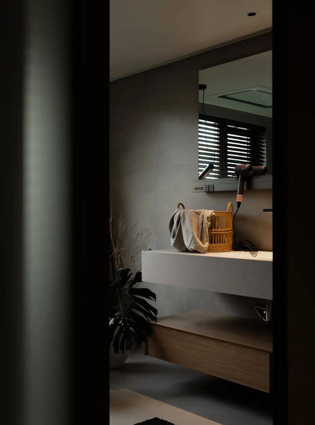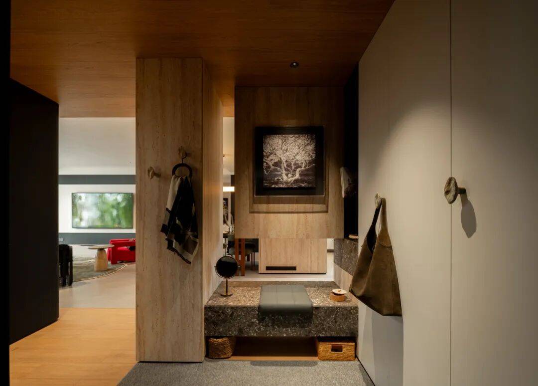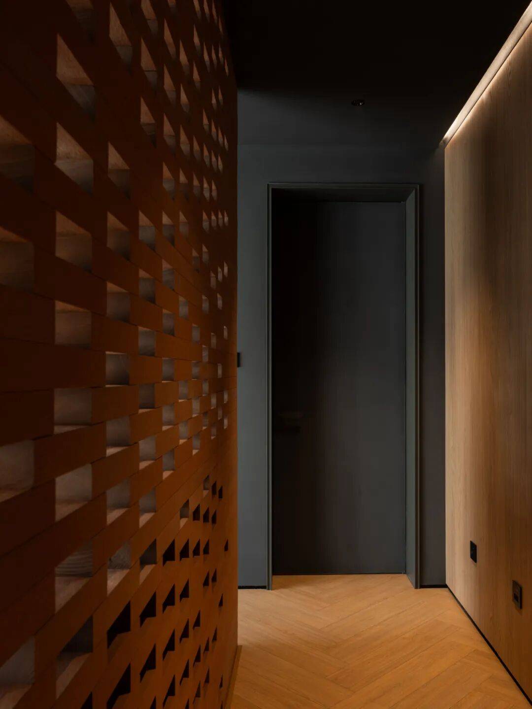 平面布置图 ©GuangHe Design 玄关|生活的序章,归家的仪式 玄关,不止是空间的过渡,更是心境的转换。它作为家的“阈界”,以低调而温厚的姿态,静默地完成由外至内的叙事转折。 一侧是整装待发的从容,木作系统与隐藏式收纳将功能隐于形式之后,勾勒出简净的立面;另一侧,或许是一方洞石端景,或是一盏微光壁灯,在有限尺度内营造出无限的意境。晨起离家,它是整理仪容、积蓄力量的起点;暮色归来,第一缕暖光、最熟悉的气息,在此悄然卸下世界的纷扰。 每一次推门而入的停顿,都是归心的仪式。光影在材质肌理上漫游,时间仿佛在此放缓。它不张扬,却以细致的关怀,承载钥匙轻响、行囊落地的日常片刻,让每一次出发与回归,
