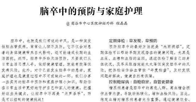 正如您所说,“及早发现和及时干预”是关键。希望每个人都能提高对脑卒中的认识,不仅为自己,也为家人筑起一道健康防线。如果您或身边人出现任何可疑症状,请务必立即就医——因为每一秒都关乎生命的质量!