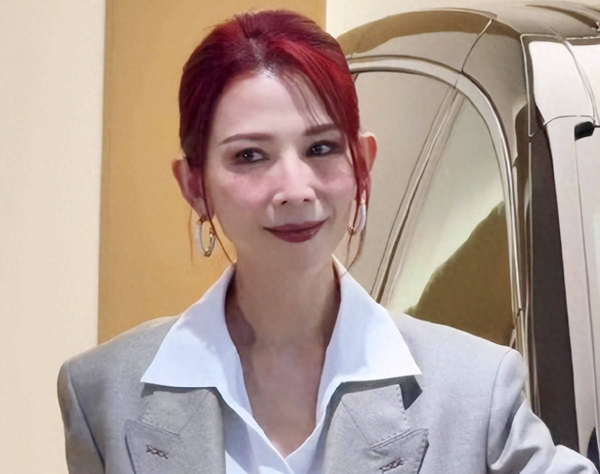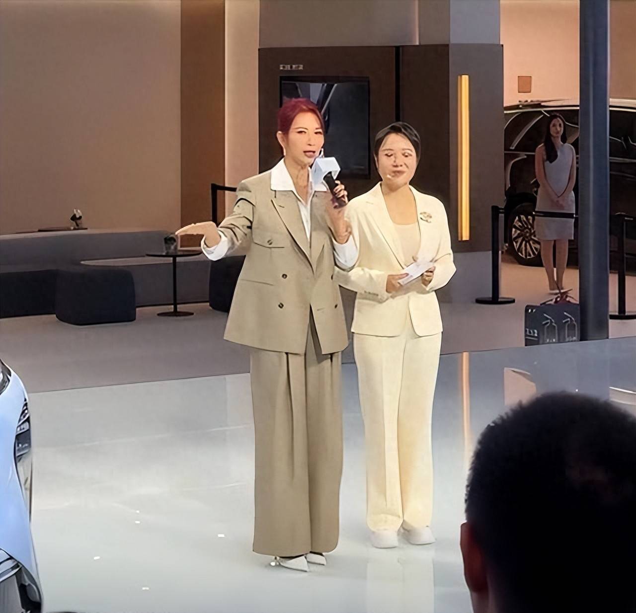 广州车展上,她以宽松西装外套搭配内搭,红色短发利落有型,圆形耳环为整体造型增添细节,即便身形消瘦得衣服发晃,仍难掩专业气场。