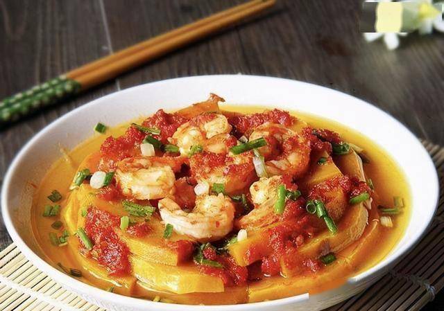 番茄酱加通络茶(荔枝壳、山楂、干荷叶煮成)或酸甜调味料熬煮,淋于虾球表面。