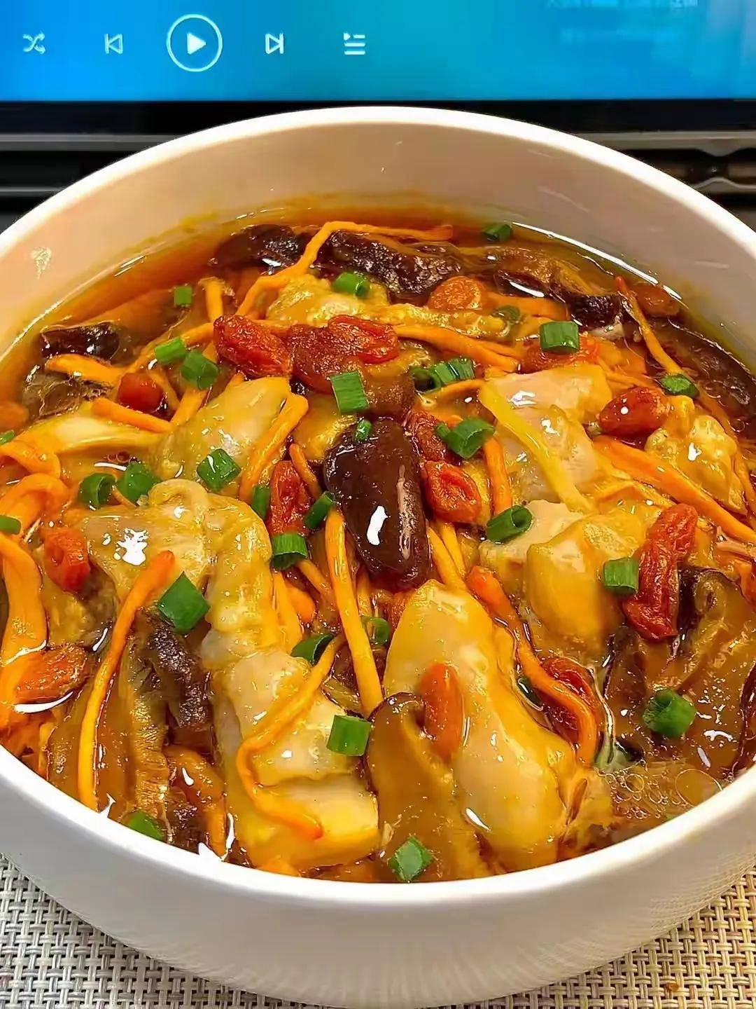 你需要准备半只三黄鸡(约600克,肉质更嫩)、干虫草花20克(提前用温水泡发10分钟)、生姜5片、红枣4颗(去核切丝)、枸杞一小把、盐1茶匙、白糖半茶匙、白胡椒粉少许、生抽1汤匙、料酒1汤匙、玉米淀粉1汤匙、香油几滴。