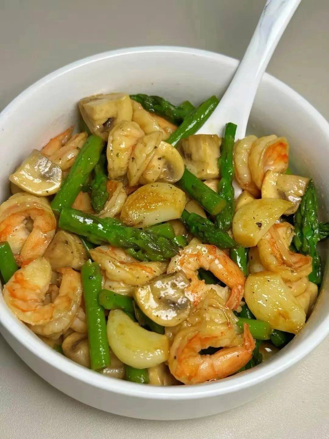 虾仁口蘑炒芦笋(春日清爽高蛋白)